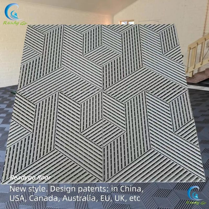 Со сроком доставки 10-30 дней и условиями оплаты через T/T, Readygo обеспечивает беспрепятственный процесс покупки. Независимо от того, обновляете ли вы пол своего гаража для повышения долговечности или оборудуете мастерскую или подвал надежным и стильным напольным покрытием, напольная плитка для гаража Readygo 3D-cubic - оптимальный выбор, который сочетает в себе инновации, качество и превосходный дизайн, подкрепленный патентом на дизайн.